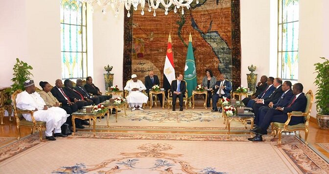 اسمحوا لي بداية أن أرحب بكم جميعاً اليوم في بلدكم الثاني مصر، وأن أعرب عن الامتنان والشكر، لسرعة الاستجابة للدعوة الطارئة لعقد اجتماع اليوم، وهو الاجتماع الذي يجسد إيماننا بمسئوليتنا المشتركة، وحرصنا على تعزيز العمل الجماعي الأفريقي، ويأتي اتساقاً مع روح ومبادئ التضامن والأخوة والوحدة، مع السودان الشقيق الذي يشهد حالياً مرحلة استثنائية من تاريخه، وتفعيلاً لمبدأ الحلول الأفريقية للمشكلات الإفريقية.