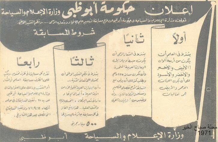 تعلن عن مسابقة فى تصميم علم الإمارات والشعار وكتابة النشيد الوطنى وتلحينه قام