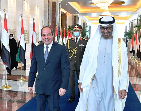 جاء ذلك خلال لقاء الرئيس عبد الفتاح السيسي اليوم في قصر الوطن بالعاصمة الإماراتية أبو ظبي مع الشيخ محمد بن زايد آل نهيان ولي عهد أبوظبي نائب القائد الأعلى للقوات المسلحة الإماراتية، حيث أقيمت مراسم الاستقبال الرسمي، وتم عزف السلامين الوطنيين واستعراض حرس الشرف.