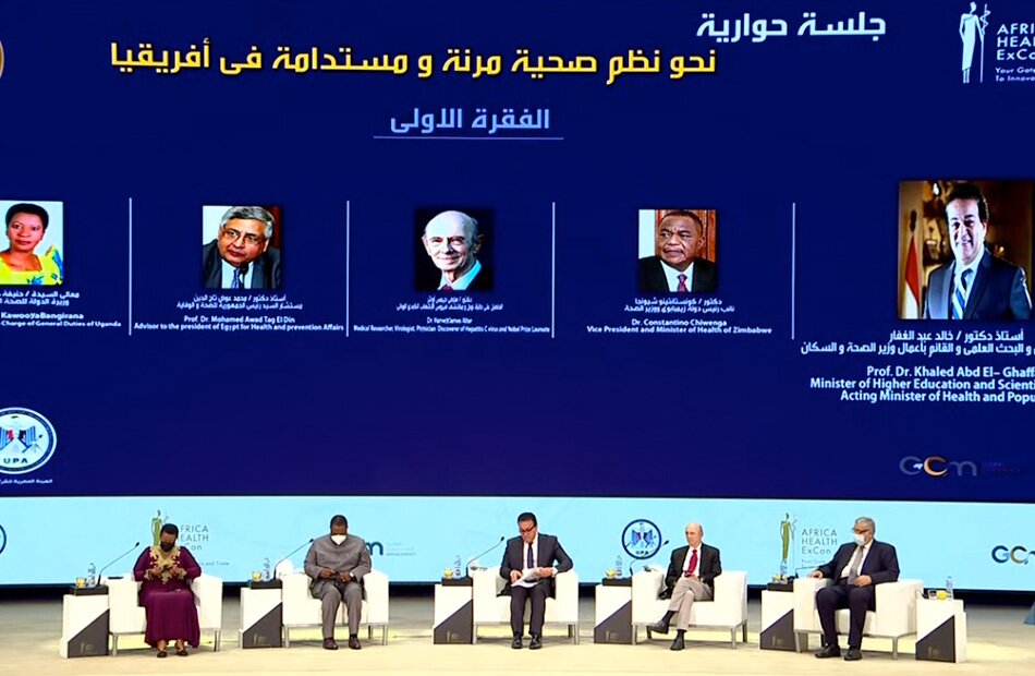 ويدير هذه الجلسة الدكتور خالد عبد الغفار وزير التعليم العالي والبحث العلمي والقائم بأعمال وزير الصحة والسكان.