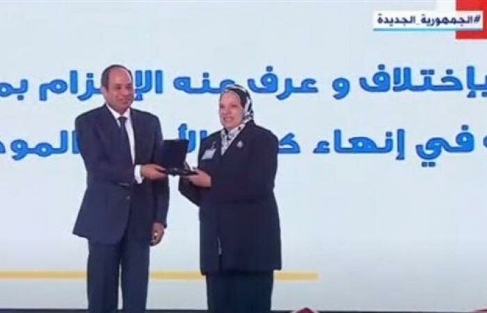 كرم الرئيس عبد الفتاح السيسي عددا من النماذج المشرفة من عمال مصر خلال الاحتفال بعيد العمال بمدينة الصالحية الجديدة بمحافظة الشرقية.